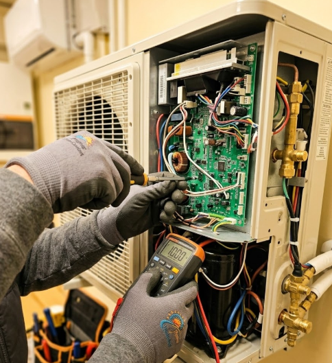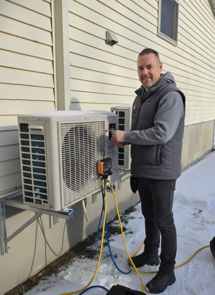 Le propriétaire peut nettoyer les filtres régulièrement et vérifier l’écoulement du drain, tandis qu’un technicien effectue un entretien périodique plus complet, pression du réfrigérant, connexions électriques, serpentins et ventilateurs. On en profite pour comparer les performances actuelles avec les valeurs de départ.